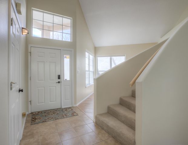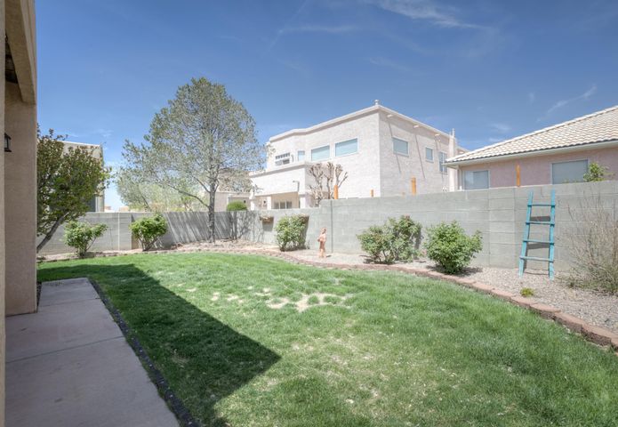While the backyard is slightly small, it is full of lush greenery and a great patio. It makes for a perfect, quiet oasis to sit and read, work from home, or enjoy a meal in the summer months. In addition to the wonderful yard is the balcony above the patio (just off of the Primary bedroom). It overlooks the Sandia mountains and would perfect to sit at and enjoy sunrises, sunsets, and NM weather!